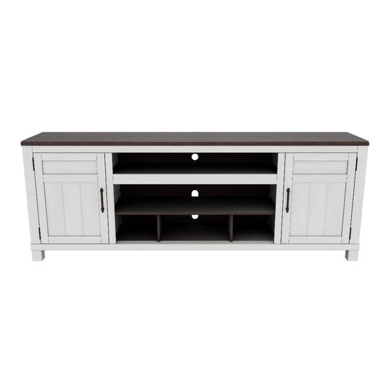 Make a farmhouse-inspired statement with the Darborn TV stand. It’s beautifully crafted to stand the test of time, with a planked effect and clean two-tone finish that lend a relaxing vintage feel. With two cabinets (each with an adjustable shelf) and an open cubby, it offers plenty of storage to house all of your electronic needs. Enhancing the experience: the optional fireplace insert (sold separately) brings a touch of warmth and beautiful ambiance to your living room.