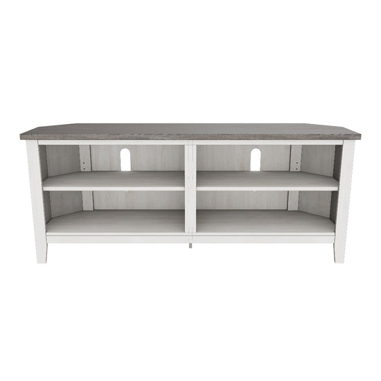Details & OverviewWith its minimalist charm, the Dorrinson TV stand is right in tune with your relaxed approach to high style. Beautifully shaped to nestle into any corner, it’s well equipped with a flexible open-concept design and cutouts for wire management that enhance the clean-lined aesthetic. The look is ideal for modern farmhouse and contemporary settings.