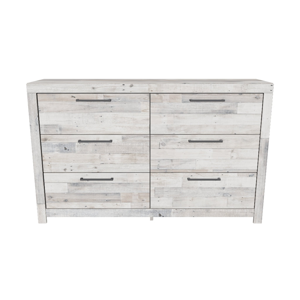 Butcher block has long been a staple in the kitchen, but the Effie dresser transforms it into something fresh and new in the bedroom. Nicks and gouges give each piece the one-of-a-kind look and feel of reclaimed wood lending an urban farmhouse aesthetic at a comfortably affordable price. Best of all—clean, linear design includes six roomy drawers that beautifully accommodate.