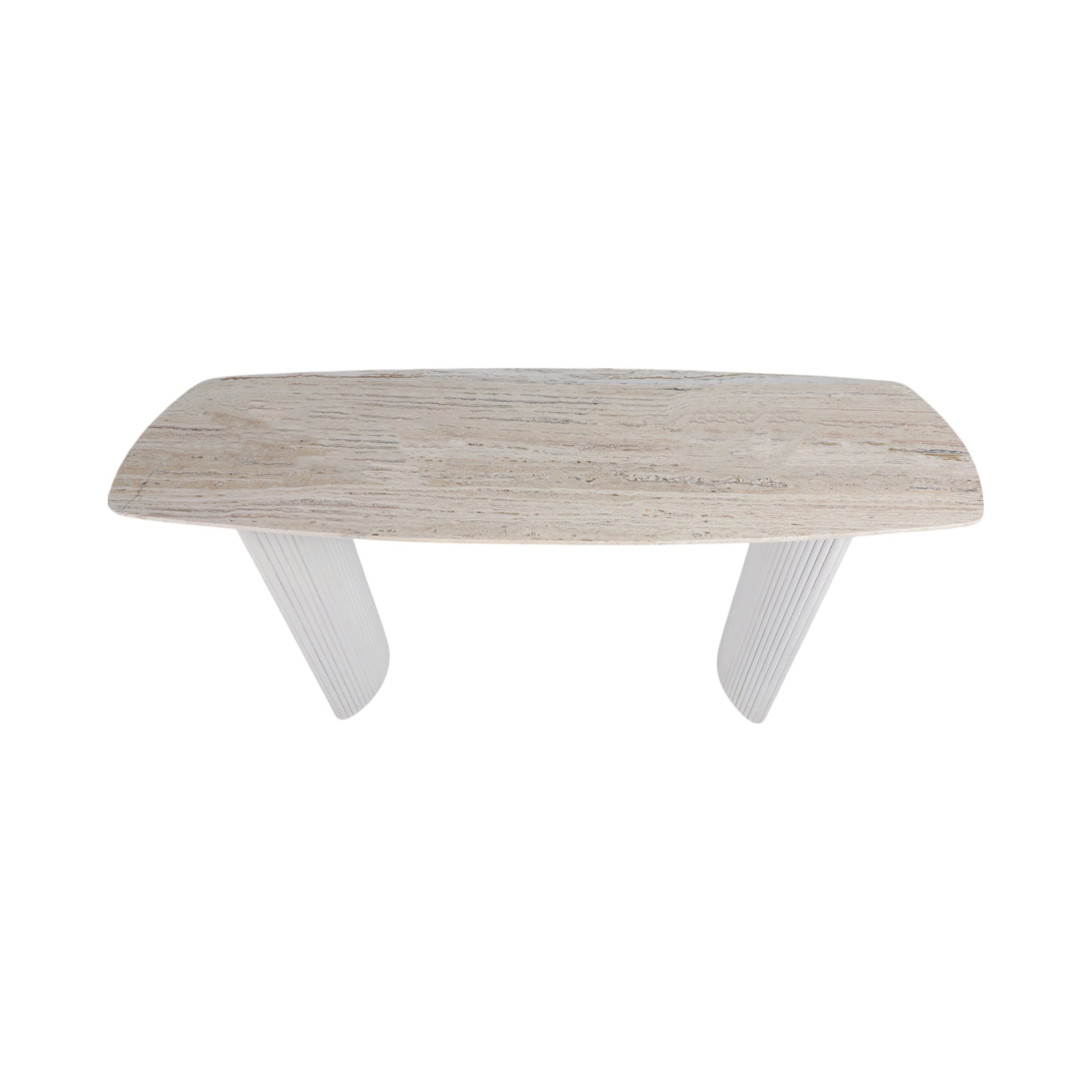 60"Catalina Travertine&Fluted Wood Console Tble/Kd