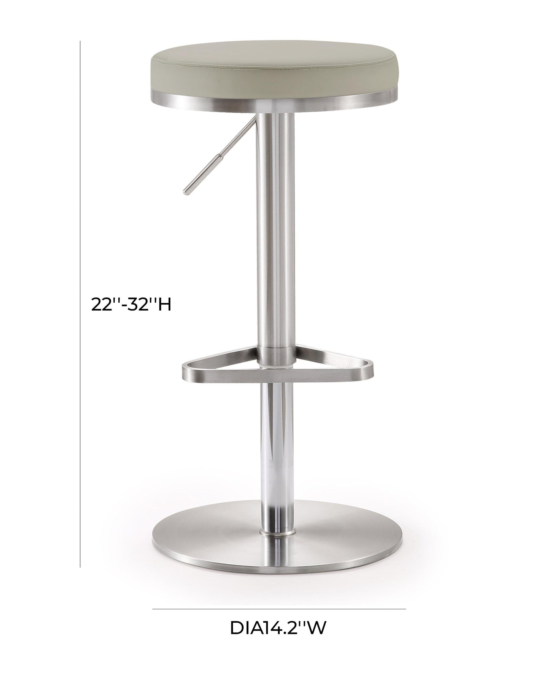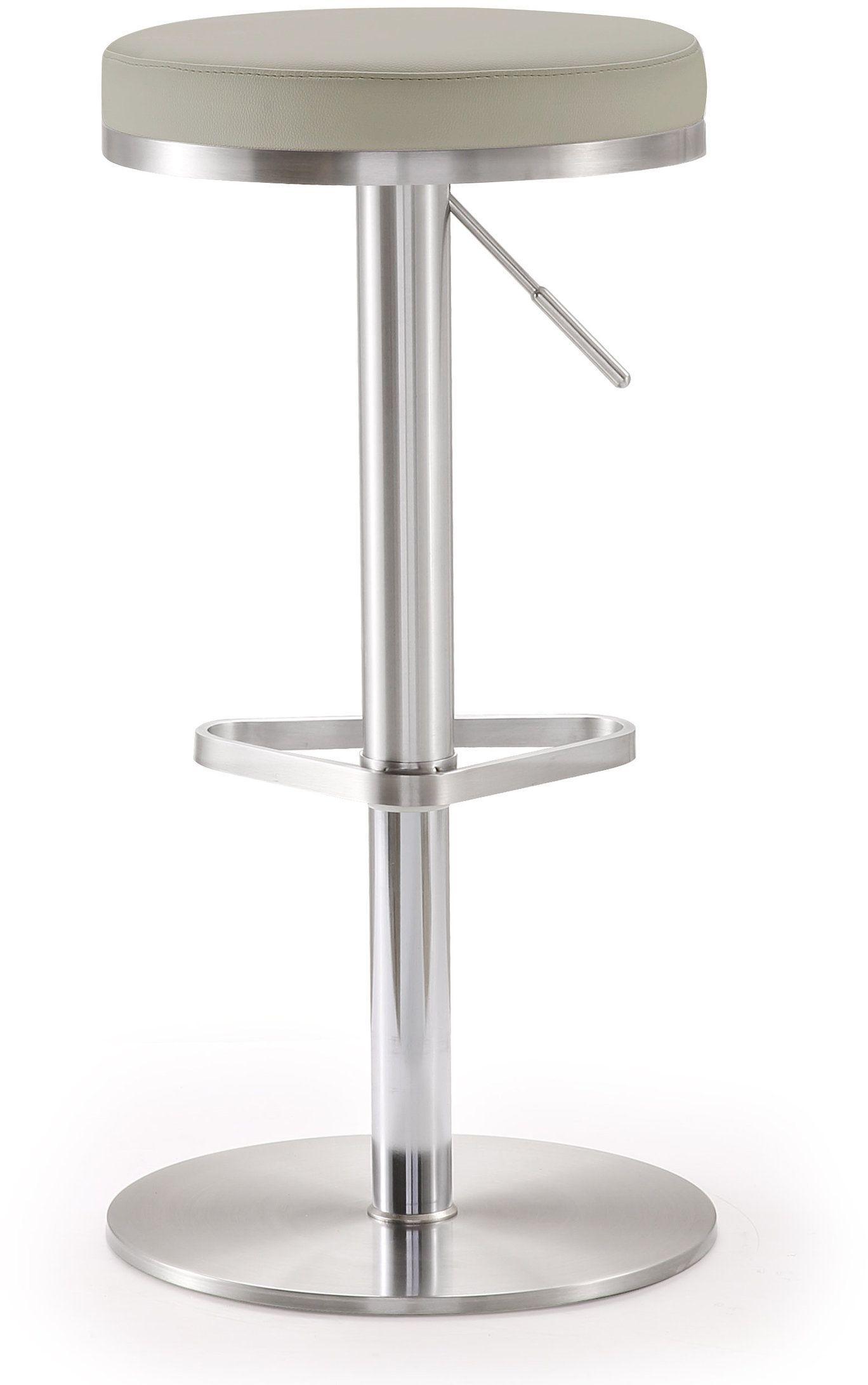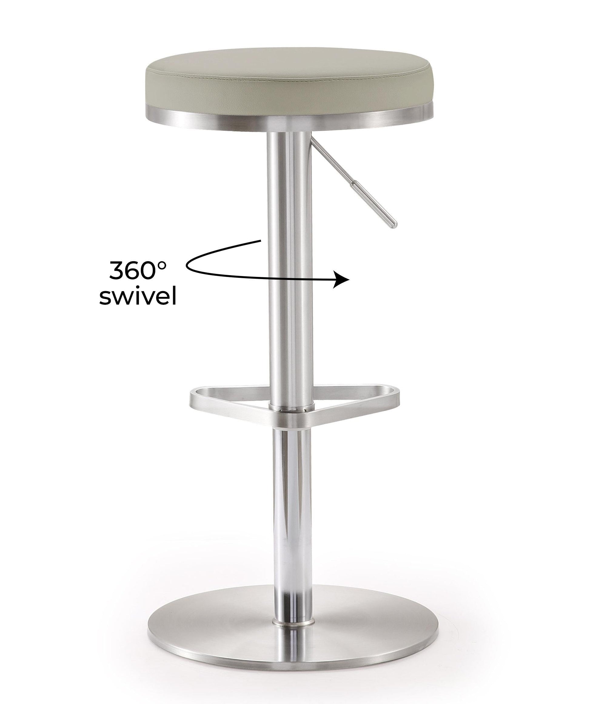 Color: Light Grey Leg Details: Stainless Steel Feature: CA117-2013 Fire Retardant Foam,Stainless steel frame and footrest,Adjustable seat height with gas lift,360Ã ‚Â ° Swivel seat,Comfortable eco leather upholstered seat,For residential or commercial use,Available in black, white, or grey,Minor assembly required,Fabric swatch available View More of Brand TOV