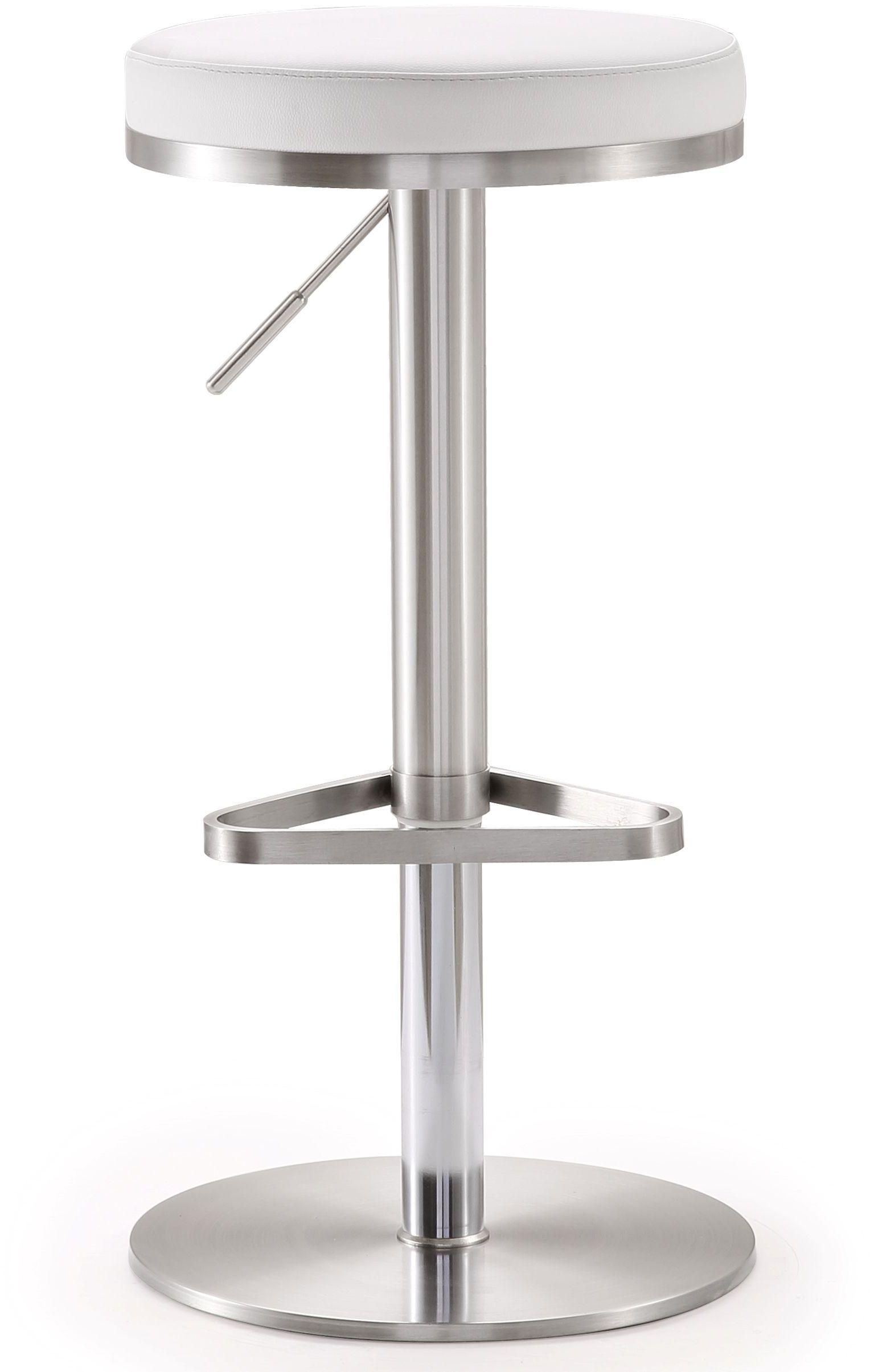 Color: White Leg Details: Stainless Steel Feature: CA117-2013 Fire Retardant Foam,Stainless steel frame and footrest,Adjustable seat height with gas lift,360Ã ‚Â ° Swivel seat,Comfortable eco leather upholstered seat,For residential or commercial use,Available in black, white, or grey,Minor assembly required,Fabric swatch available View More of Brand TOV