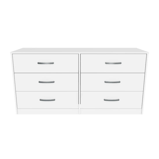 The Flannia dresser has simple lines and contemporary styling, allowing it to blend seamlessly with any decor. Six spacious drawers slide easily on metal ball bearings and can be used to keep your clothes neat and organized. Sleek metal pulls in a brushed nickel-tone finish add to the streamlined aesthetic. Combine with other units in the collection to create a room that’s smart and stylish.