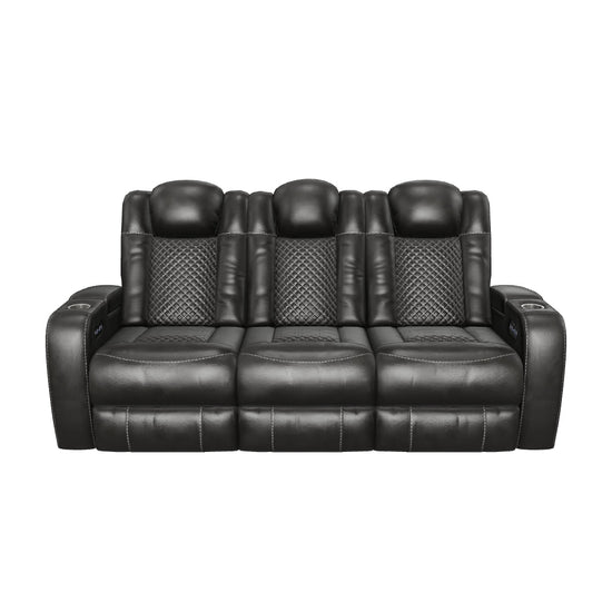 The Fyne-Dyme power reclining sofa goes beyond basic comfort. It upgrades the everyday, turning your living room into an entertainment hub. Don’t want to leave your seat? Keep essentials in reach with assorted charging options, cup holders and storage arms. You can create an even cooler vibe for family movie nights and friendly gaming matches with LED lights. And your sleek style isn’t compromised—its diamond stitching and streamlined arms recall the aesthetics of luxury automobiles.