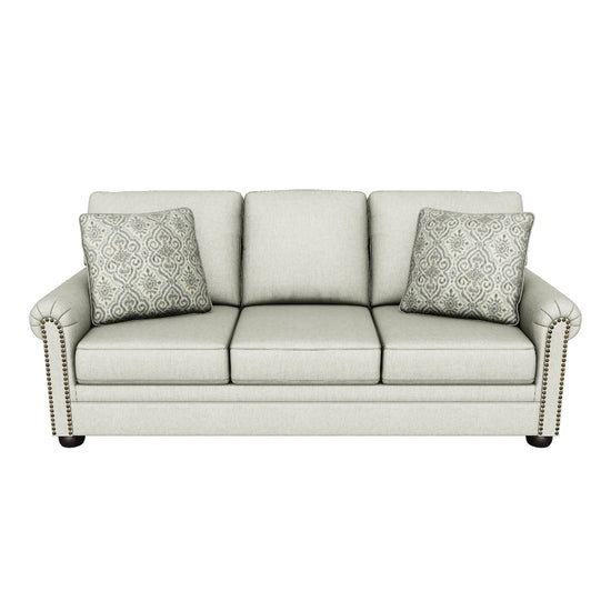 Inspired by the past but rooted firmly in the present, the Gaelon sofa complements your transitional seating area. Its versatile upholstery is delightfully detailed for a subtle herringbone effect. Designer touches like decorative nailhead trim and bun legs add traditional character. With this sofa's reliable style and comfort, all you need to do is sit back and relax.