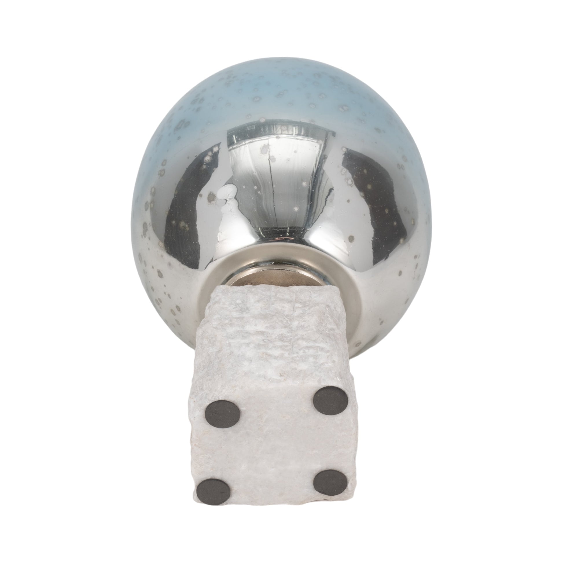 Glass, 13" Bowl Pillar Holder Marble Base, Aqua/Wh