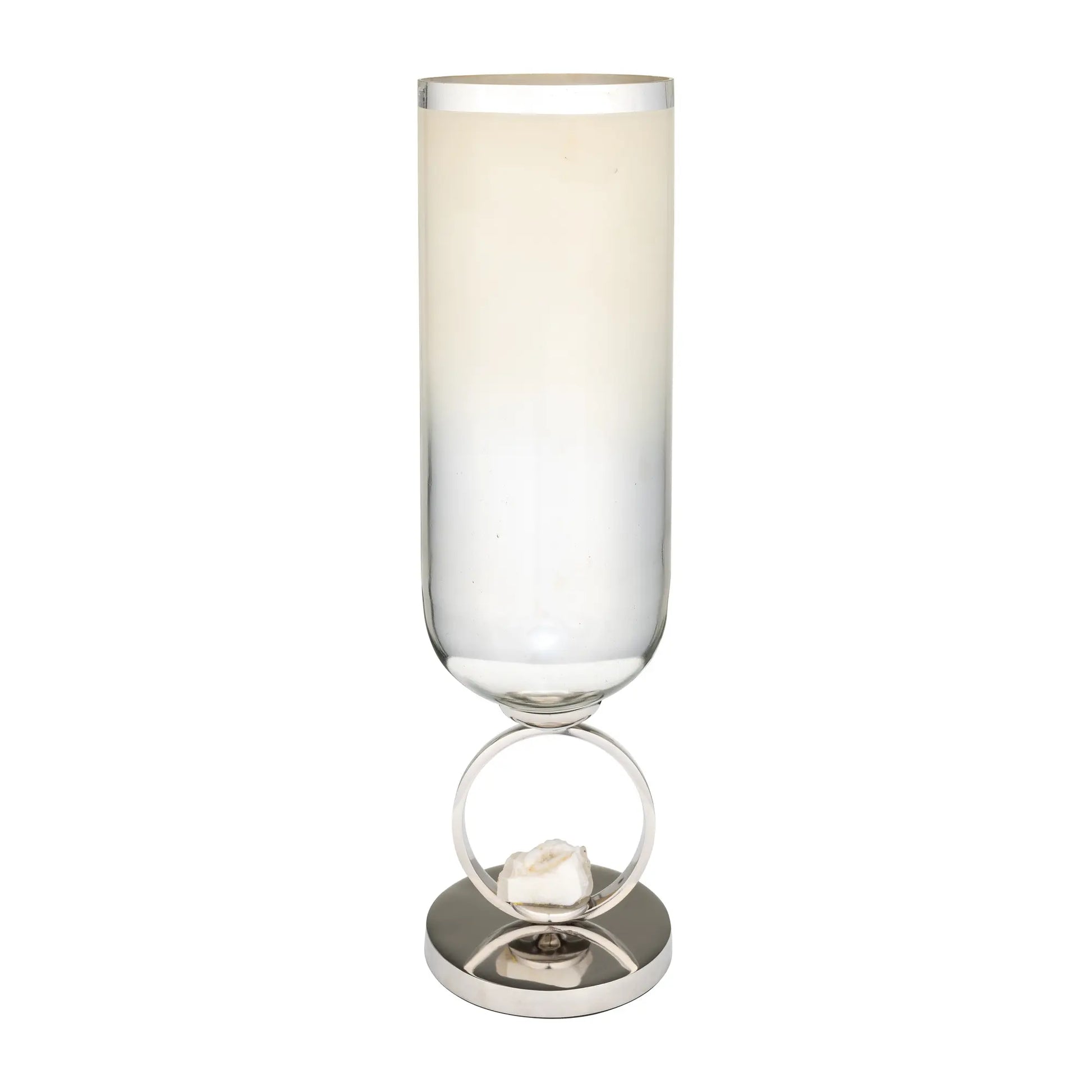 GLASS, 17" VASE W/ METAL BASE STONE ACCENT, PEARL