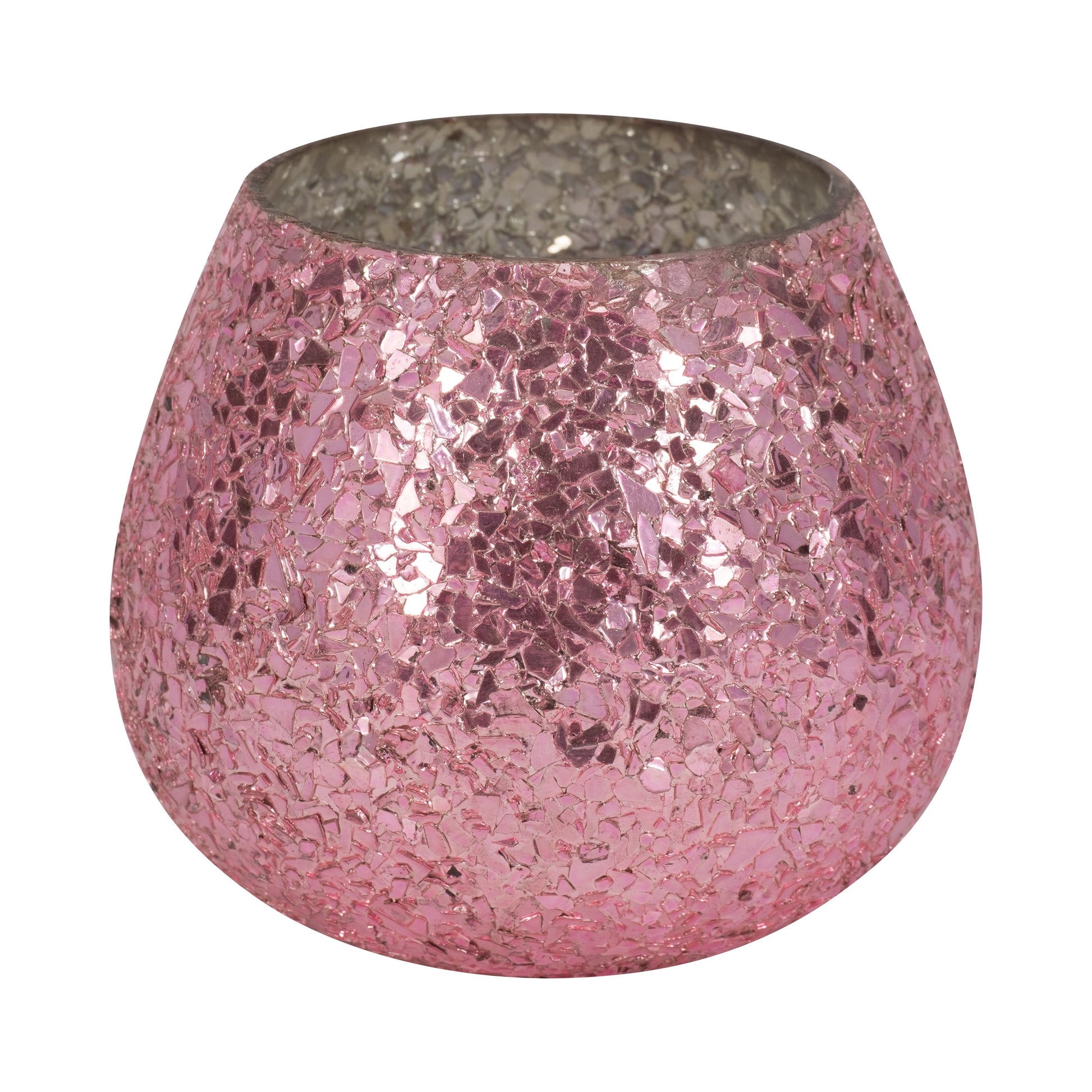 Glass, 5" 17 Oz Crackled Scented Candle, Pink