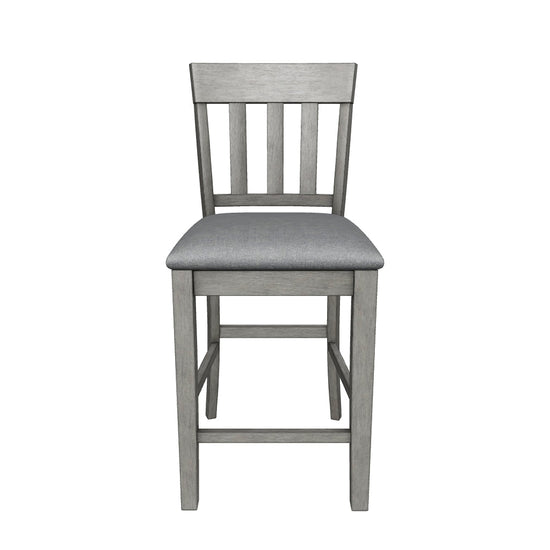 Upholstered Barstool (2/CN),,Made with solid wood;Antiqued gray finish;Upholstered in gray textural polyester fabric;Cushioned foam seat;Contoured comb-back design;Assembly required