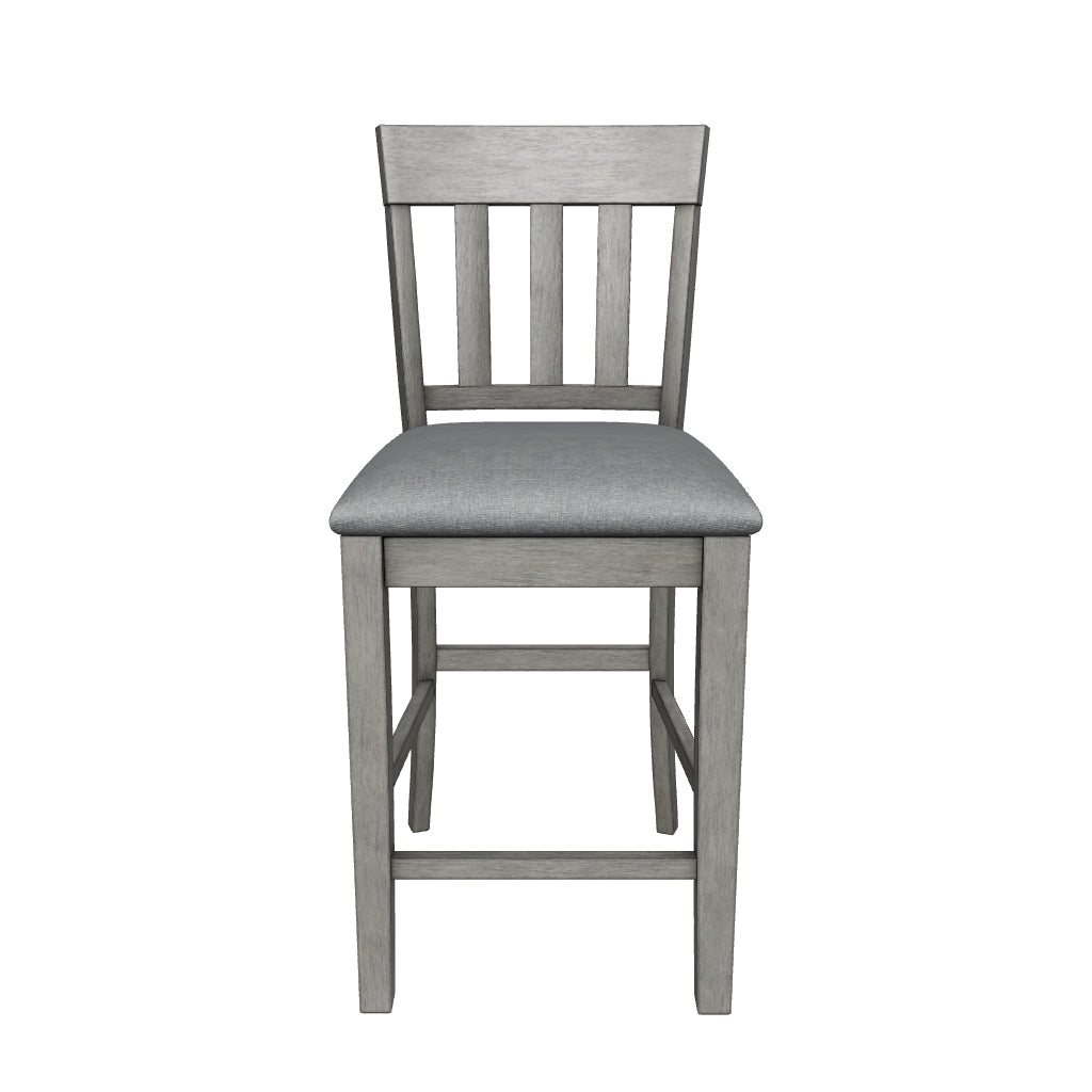Details & OverviewCool and on-trend. This upholstered barstool sports a two-tone gray look for a contemporary-yet-casual feel. The cushioned foam seat in a gray textural fabric pairs seamlessly with the antiqued gray finish, while the contoured comb-back design adds a dash of geometric flair. With this chic seat, it’s easy to dine in style.