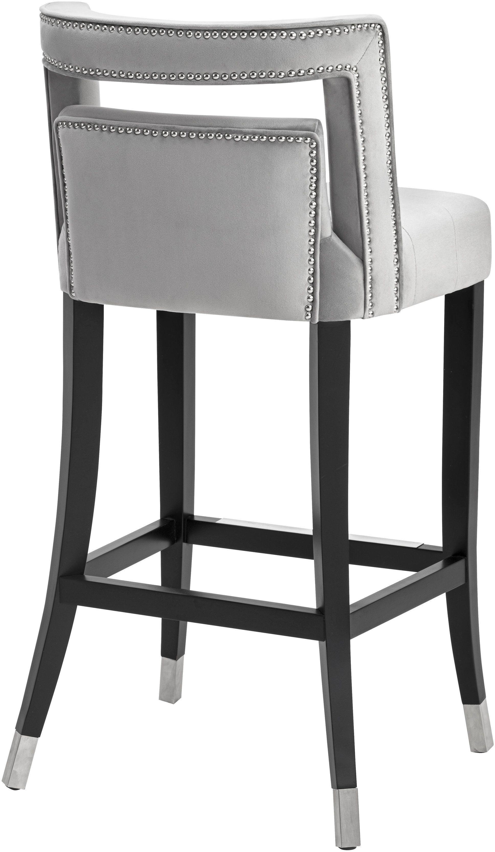Color: Grey Leg Details: Birch, Velvet Feature: CA117-2013 Fire Retardant Foam,Handmade by skilled furniture craftsmen,Individually hand-applied silver nailheads,Sumptuous velvet upholstery with tufted seat,Birch wood legs with silver steel caps,Matching steel footrest,Available in multiple colors in counter or bar height options,Ships assembled, View More of Brand TOV