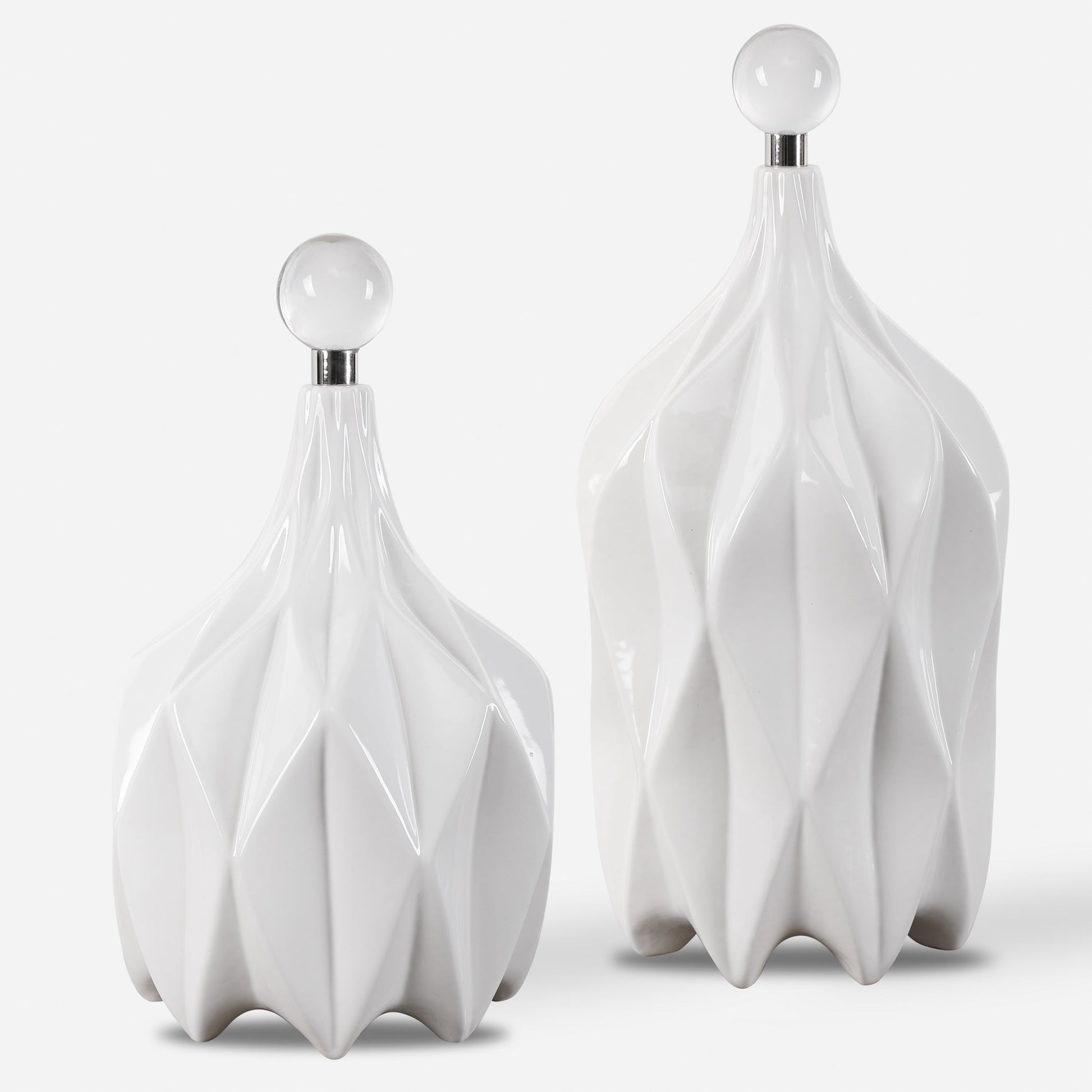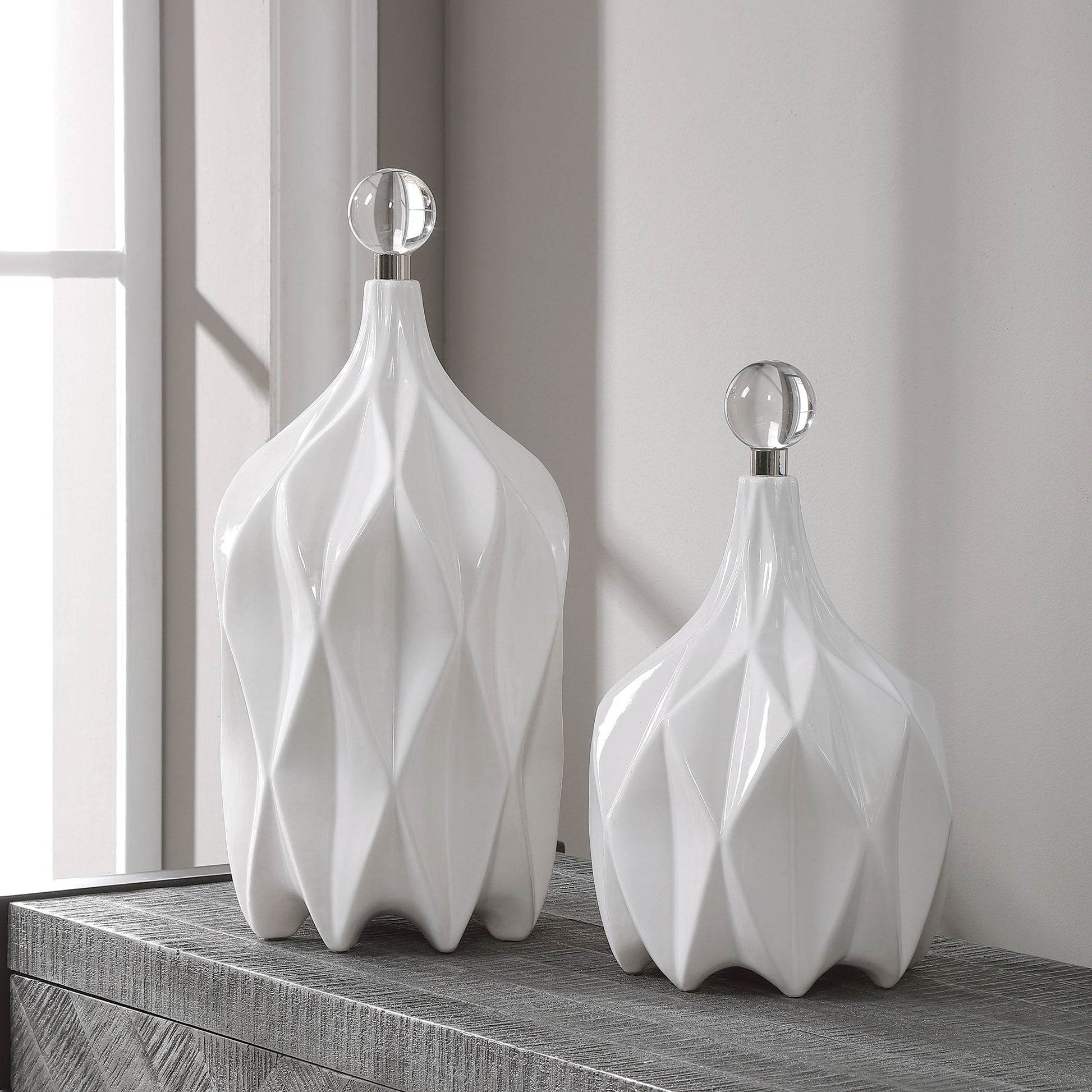 • Klara White Bottles, S/2 is a perfect addition to your collection of table decors, blending style and functionality.