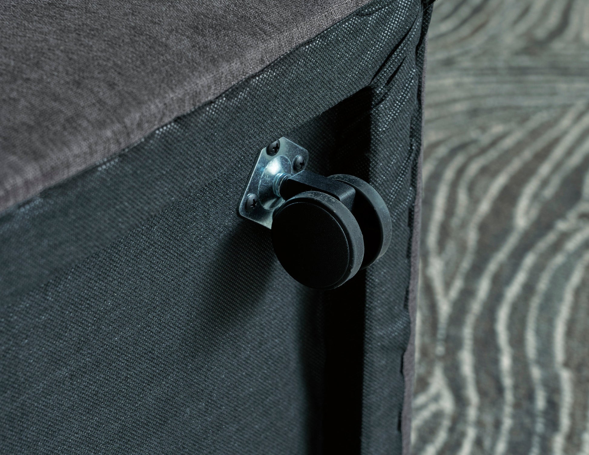 Oatmeal colored polyester upholstery;Foam-filled fixed seat and back cushion;Casters for easy mobility;No assembly required