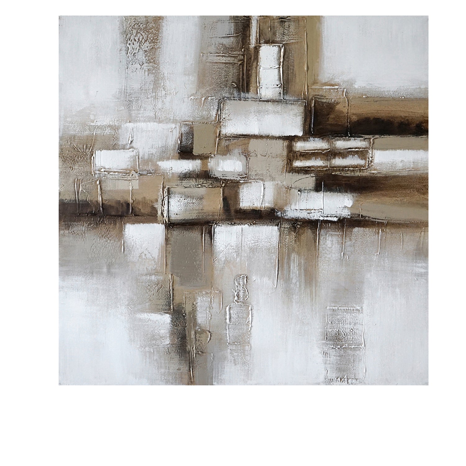 The painting appears to be made with acrylic or oil paint on a canvas. The dominant colors are blue, green, and yellow, with accents of white, black, and red. The brushstrokes are loose and gestural, and the overall impression is one of movement and energy. The painting is signed in the lower right corner, but the signature is difficult to make out.