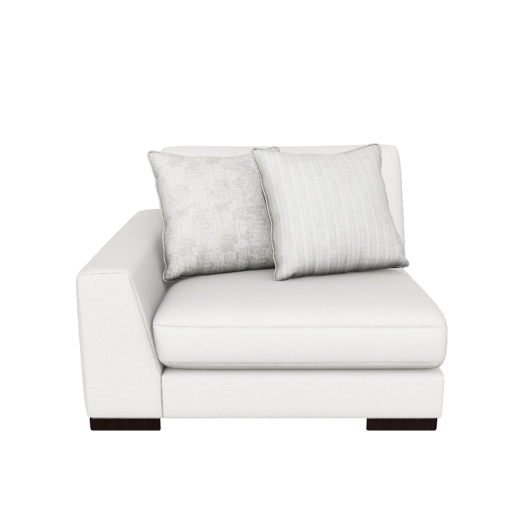 This left-arm facing corner chair is made with polyester upholstery. Fully finished on all sides, it pairs with other items in the series to make a modular sectional.