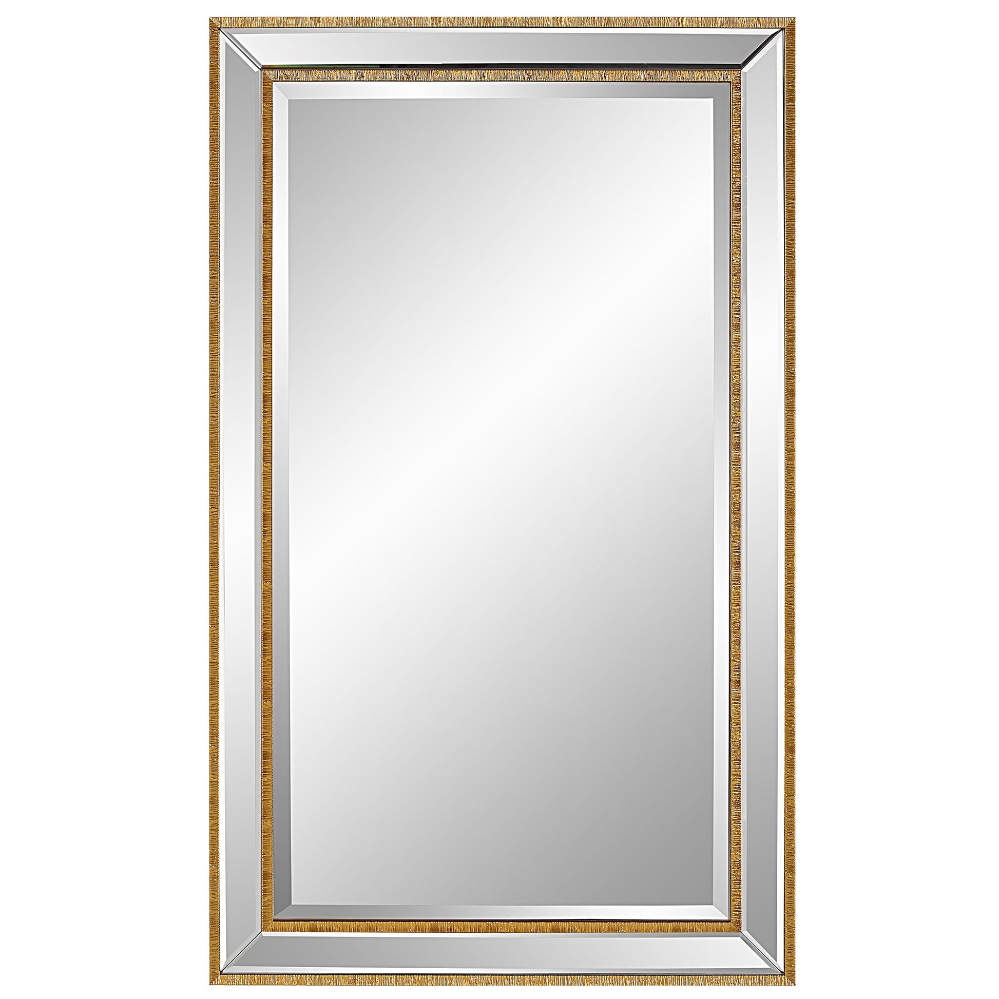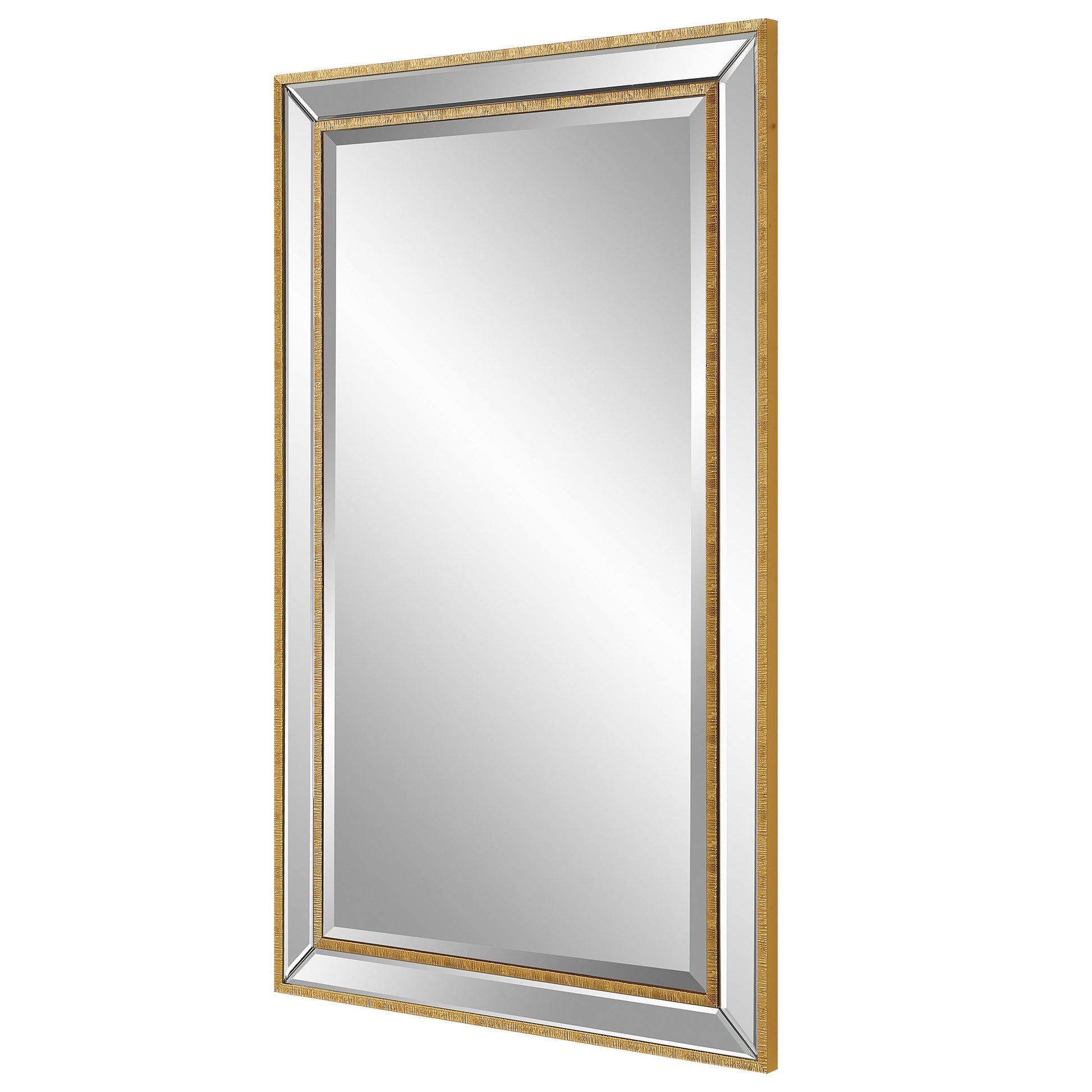 Details & OverviewThis elegant frame features beveled mirror panels, accented with a gold organic textured design that surrounds the frame. The inner mirror has a .75" bevel. May be hung either vertically or horizontally. Also available in black, W00552.