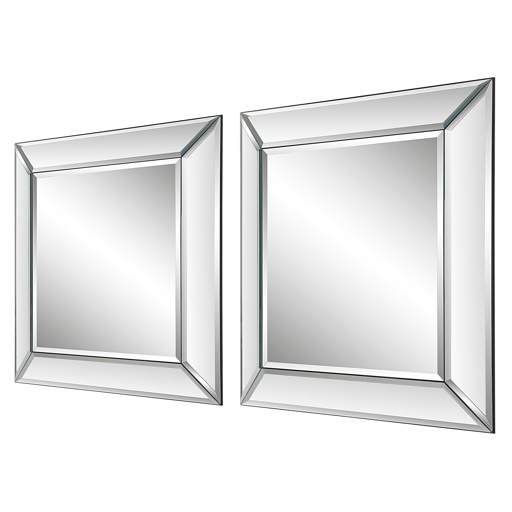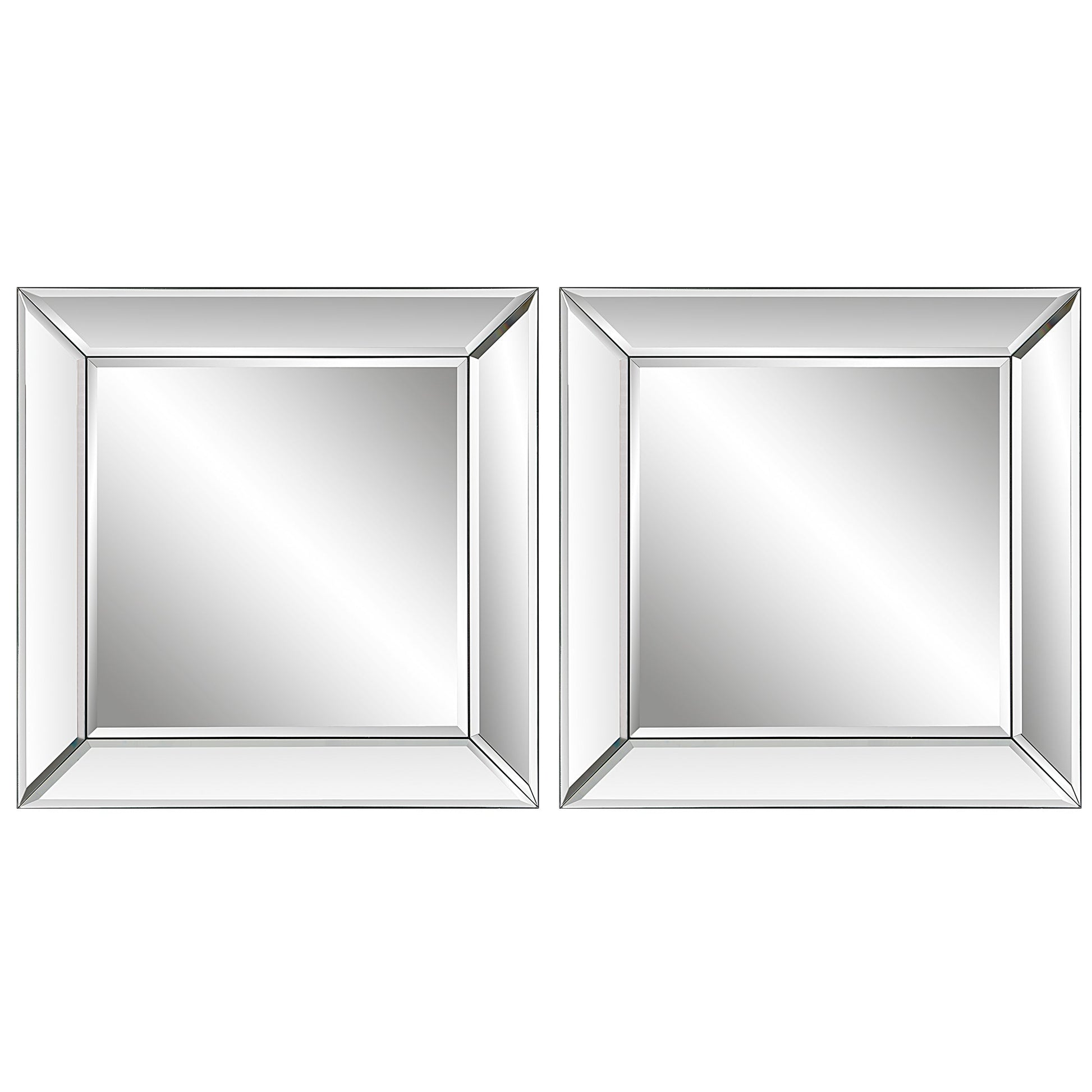 Details & OverviewThese elegant frameless mirrors feature beveled mirror panels, which are slightly sloped away from the beveled center mirror. Sold as a set of two, these frames are sized perfectly to be grouped together to create a beautiful wall display.