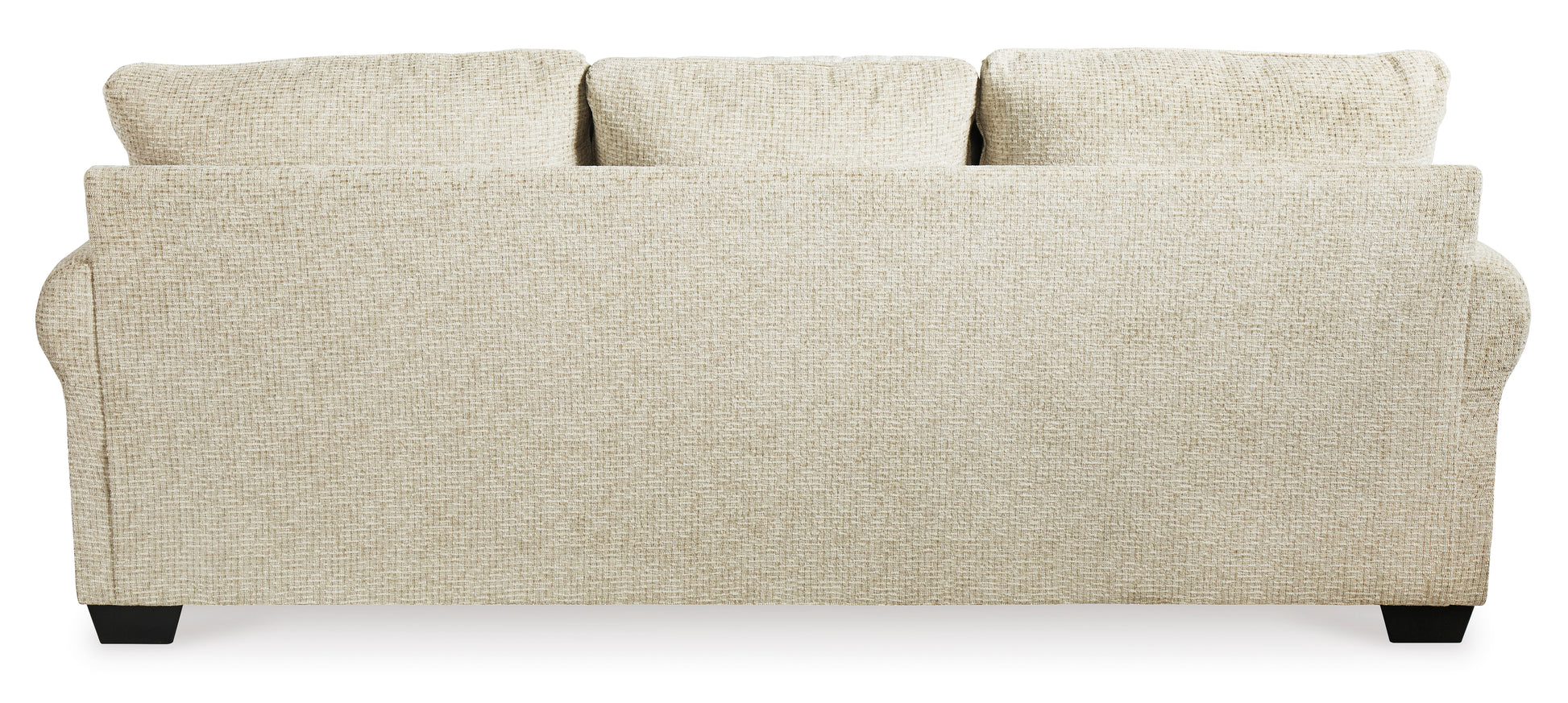 The Monaghan sofa strikes a beautiful balance between classic and current. Traditional elements include t-cushion seating and setback roll arms, angled for modern flair. Posh collection of pillows in spa mist and jacquard paisley make a muted, mellow complement to the sofa’s casual textured chenille upholstery. Choice of sandstone beige is a light and lovely style awakening.