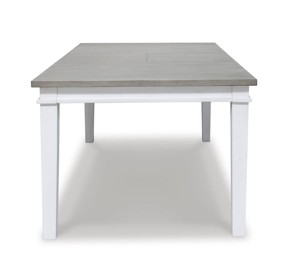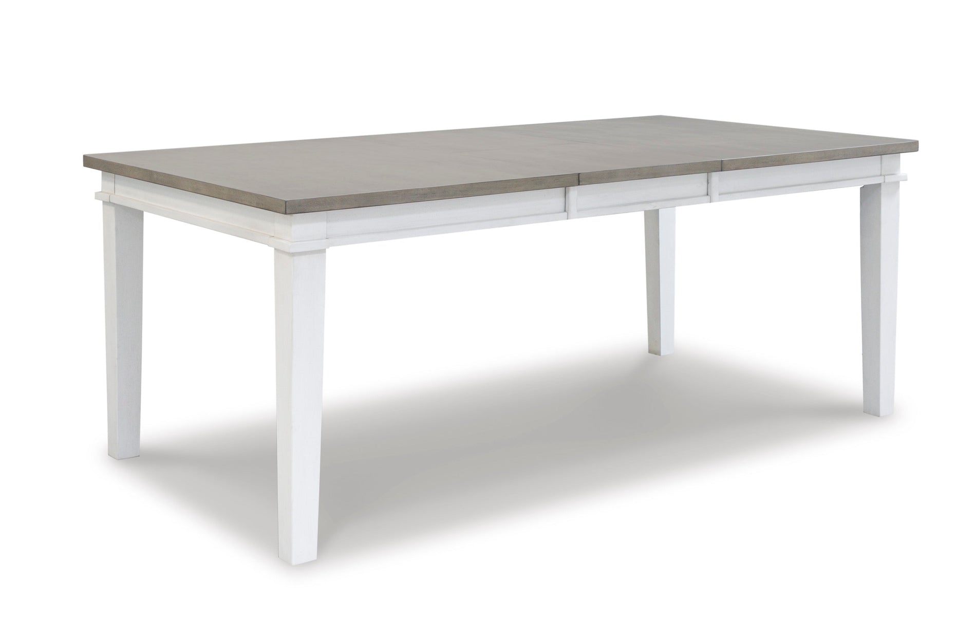 Embrace uncluttered character. This dining extension table emphasizes sheer simplicity with its clean-lined form and sleek self-storing leaf. Tranquil neutrals create a soothing two-tone finish. Designed to complement aesthetics from minimalist to modern farmhouse, this table is a simply striking feast for the eyes.