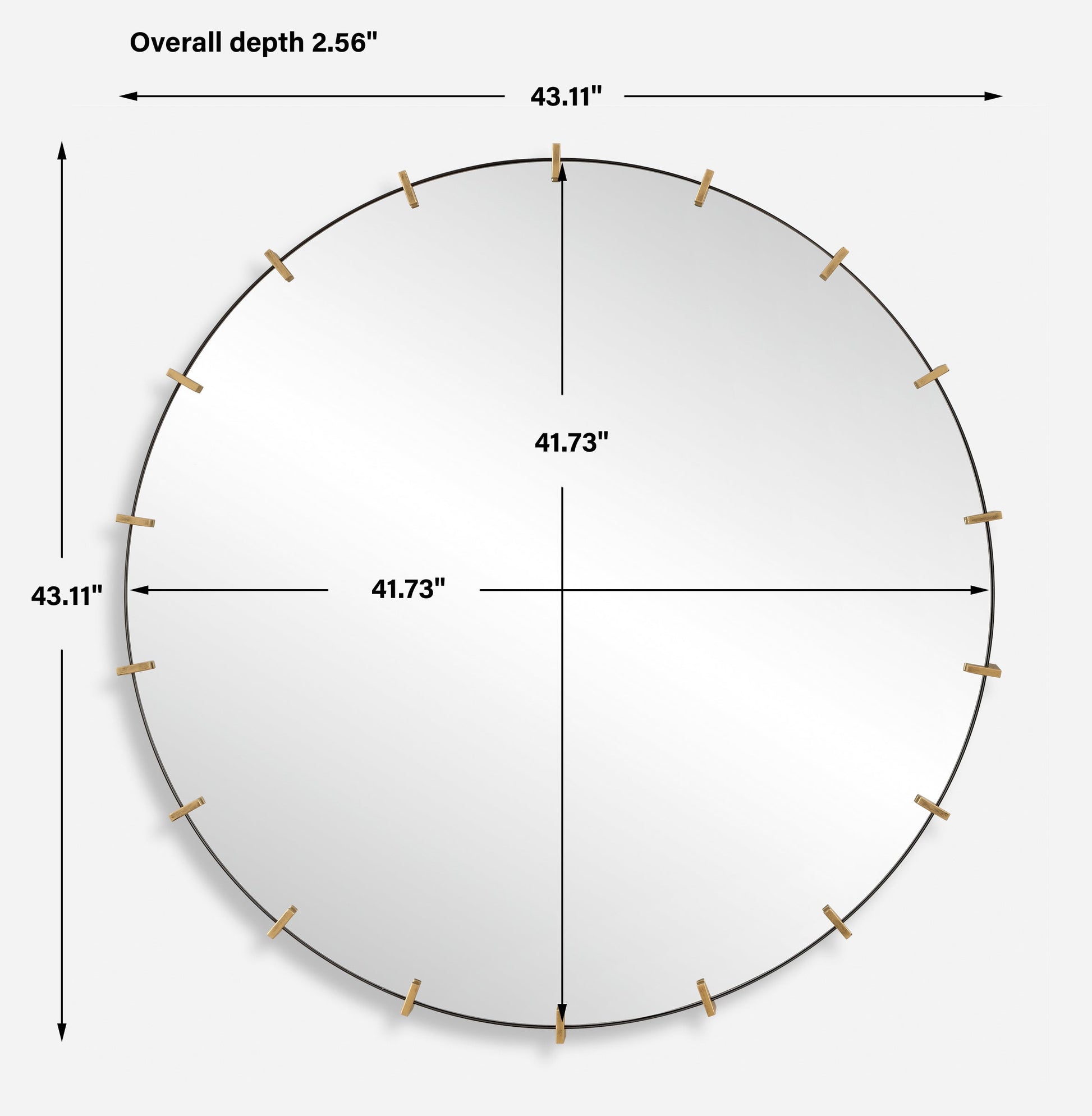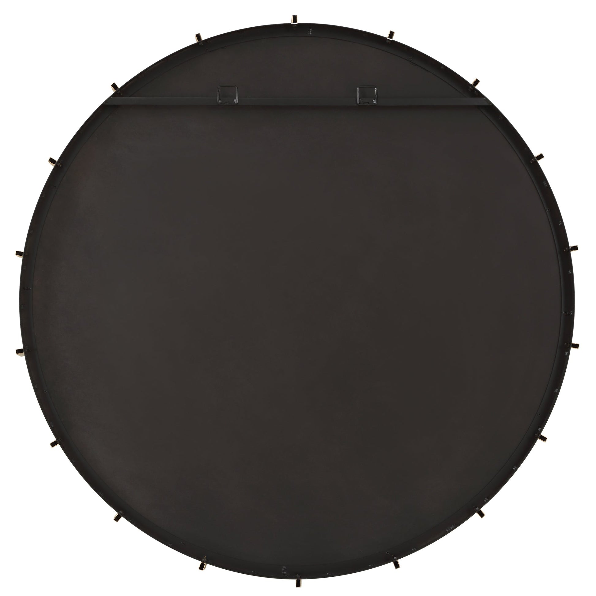 The Pali Round Mirror Successfully Pairs Contemporary And Industrial Styles With A Black Iron Strap Frame Accented By Lightly Antiqued Brushed Gold Details, Surrounding A Floating Polished Edge Mirror.