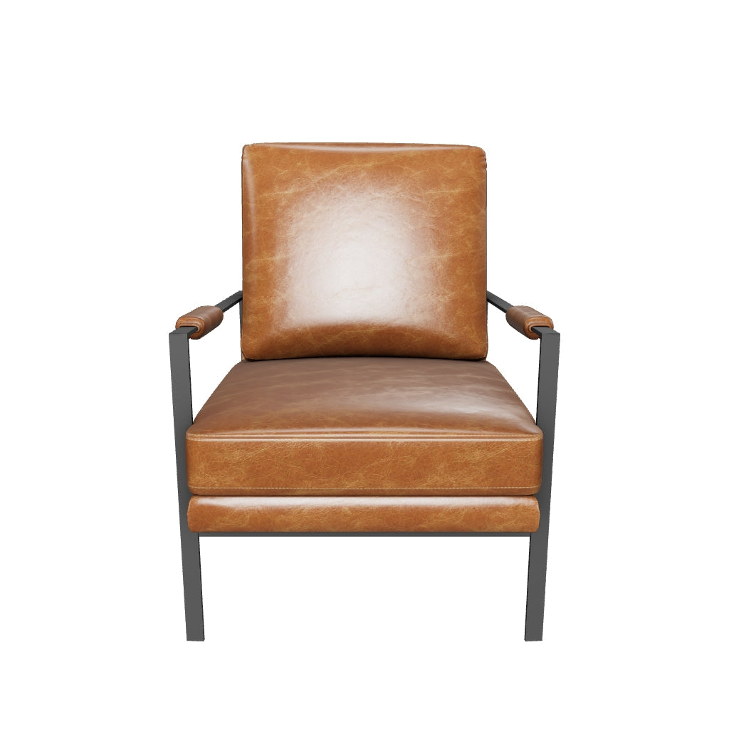 Find the perfect balance of high style and plush comfort with the Peacemaker accent chair. Ultra-linear metal frame and box seat cushion styling are sure to appeal to contemporary tastes. Weathered faux leather in a light brown tone give this cool chair a sense of warmth.