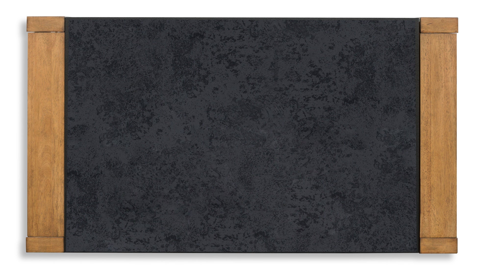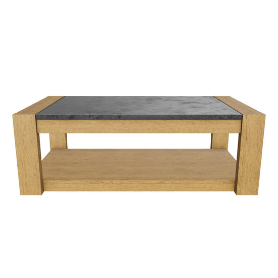 Made with hardwood solids, oak veneer and MDF substrate;Natural wood-tone finish;Black faux stone melamine laminate tabletop;Spring lift top;Assembly required