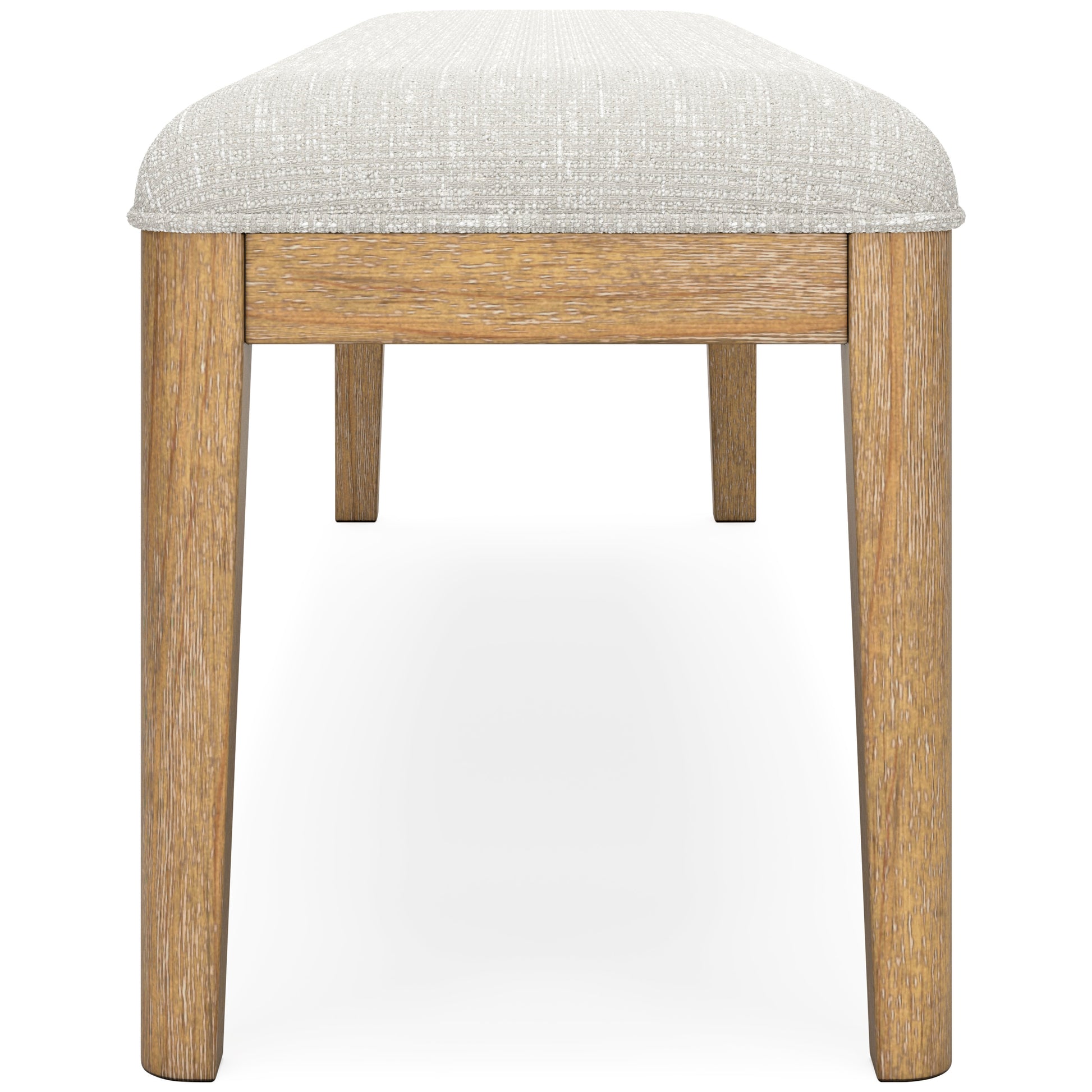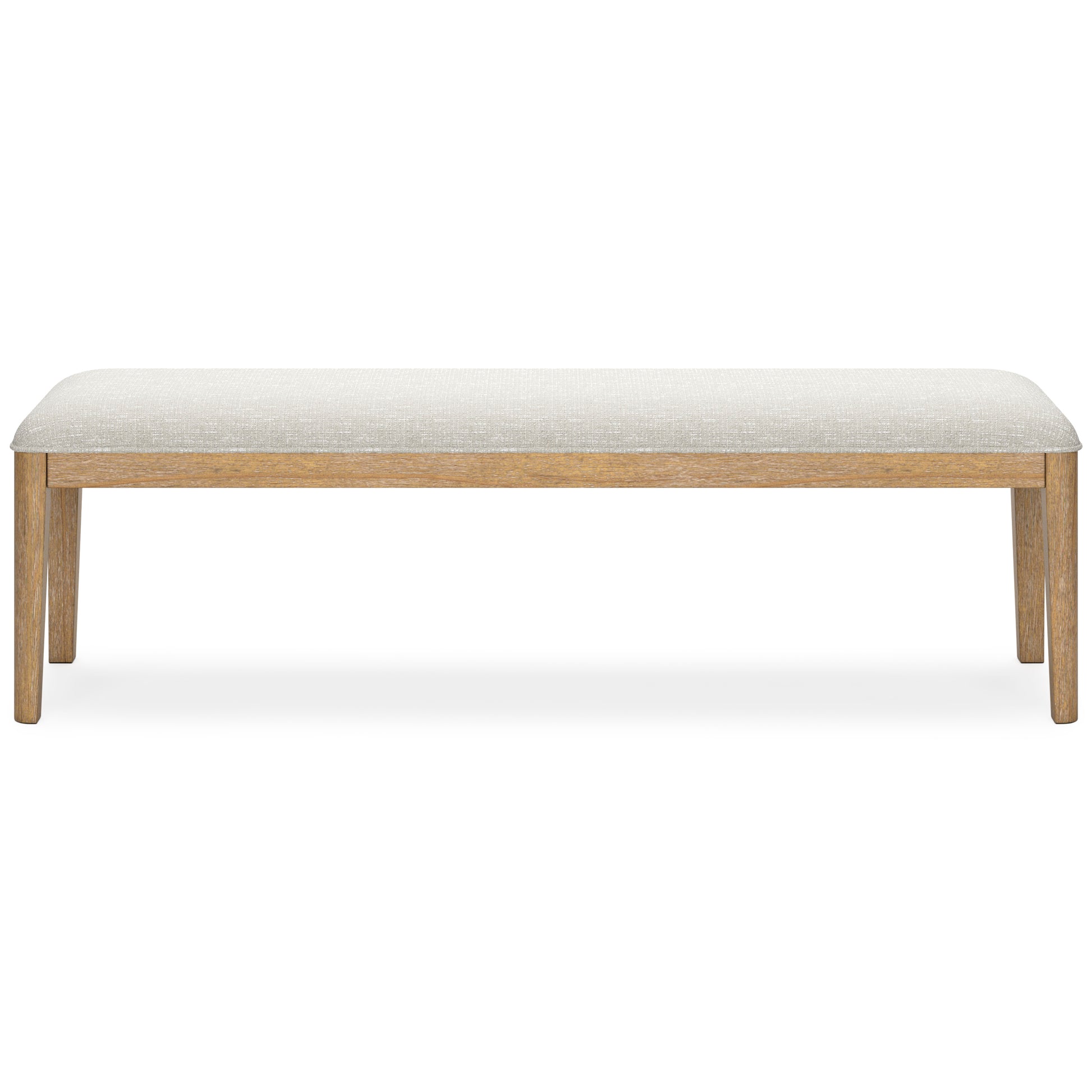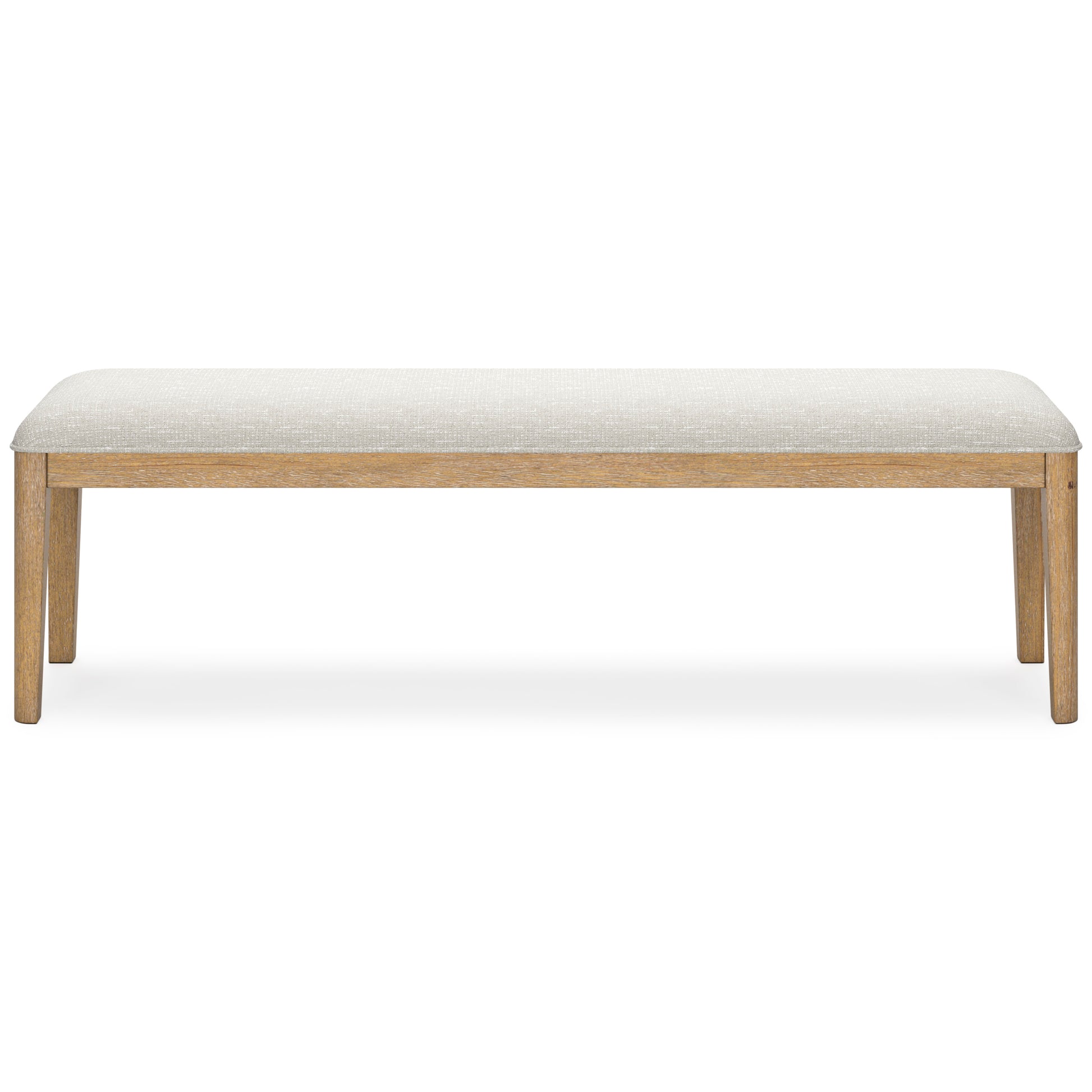 The Rencott dining bench's classic yet contemporary good looks are hard to deny. Its softly cushioned seat in a woven fabric adds a comfortably cozy dimension to everyday seating or when guests gather. With a light oak finish and wire-brushed wood grain texture, this bench lends an organic appeal to your delicious dining space ... or wherever family and guests gather.
