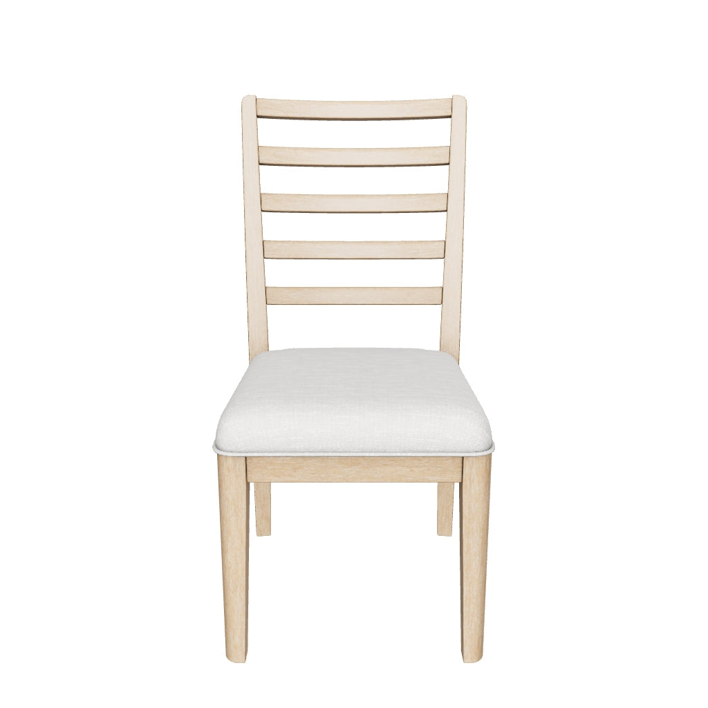 The Rencott dining side chair's classic yet contemporary good looks are hard to deny. Crafted with a modern ladderback design and a softly cushioned seat, it adds a comfortably cozy dimension to everyday seating or when guests gather. With a light oak finish and wire-brushed wood grain texture, this chair lends an organic appeal to your delicious dining space ... or wherever family and guests gather.