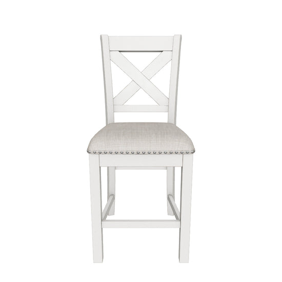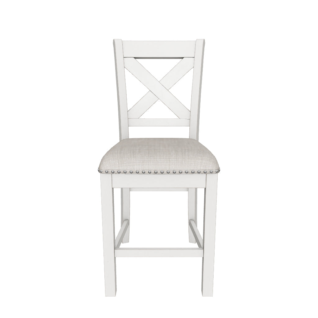 The Robbinsdale counter height bar stool is sure to impress come mealtime. With its white finish and light gray upholstery, farmhouse-style seating has never been so fashionable. All that’s missing is you and your family.