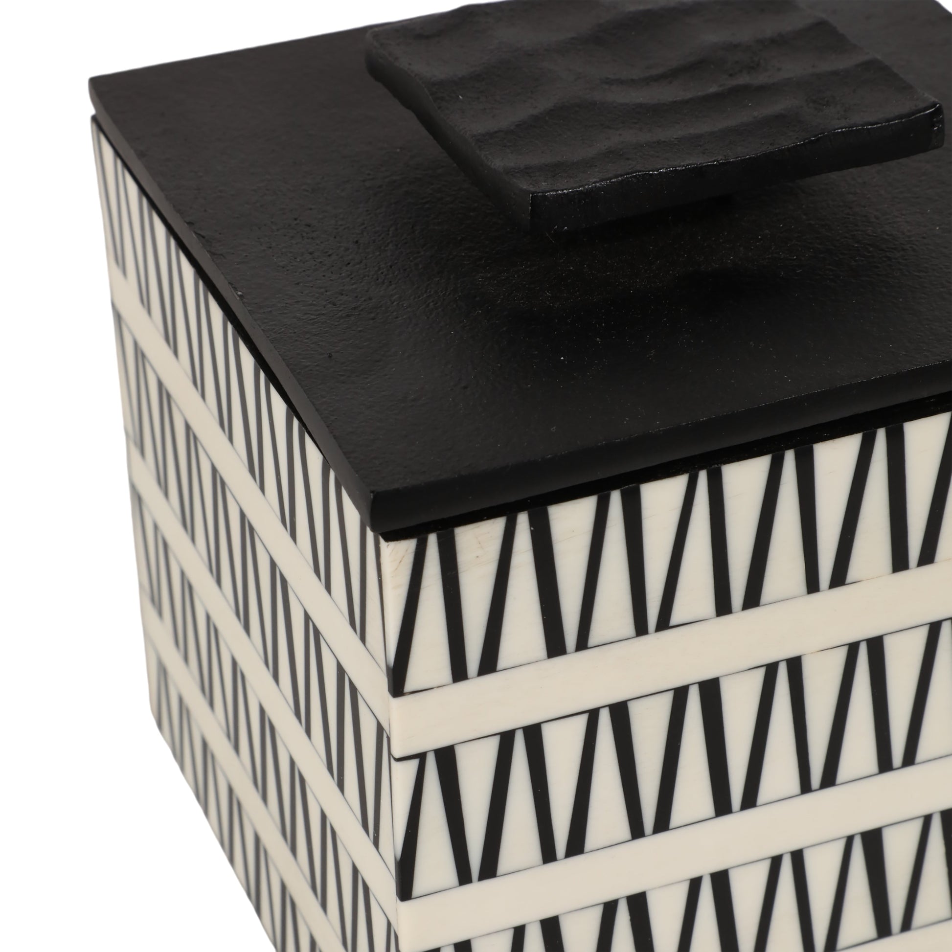 S/2 7/10" Gobiel Black & White Resin Boxes