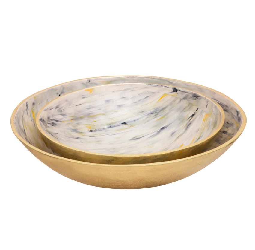 S/2 DECORATIVE METAL TRAY, IVORY