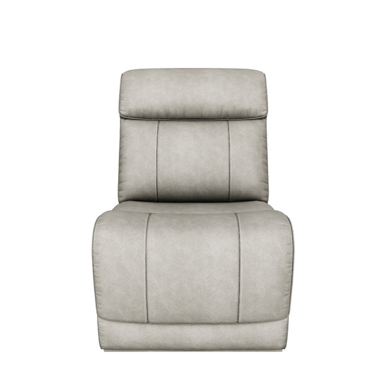 This armless chair is made with faux leather upholstery. Pairs with other items in the series to make a sectional.