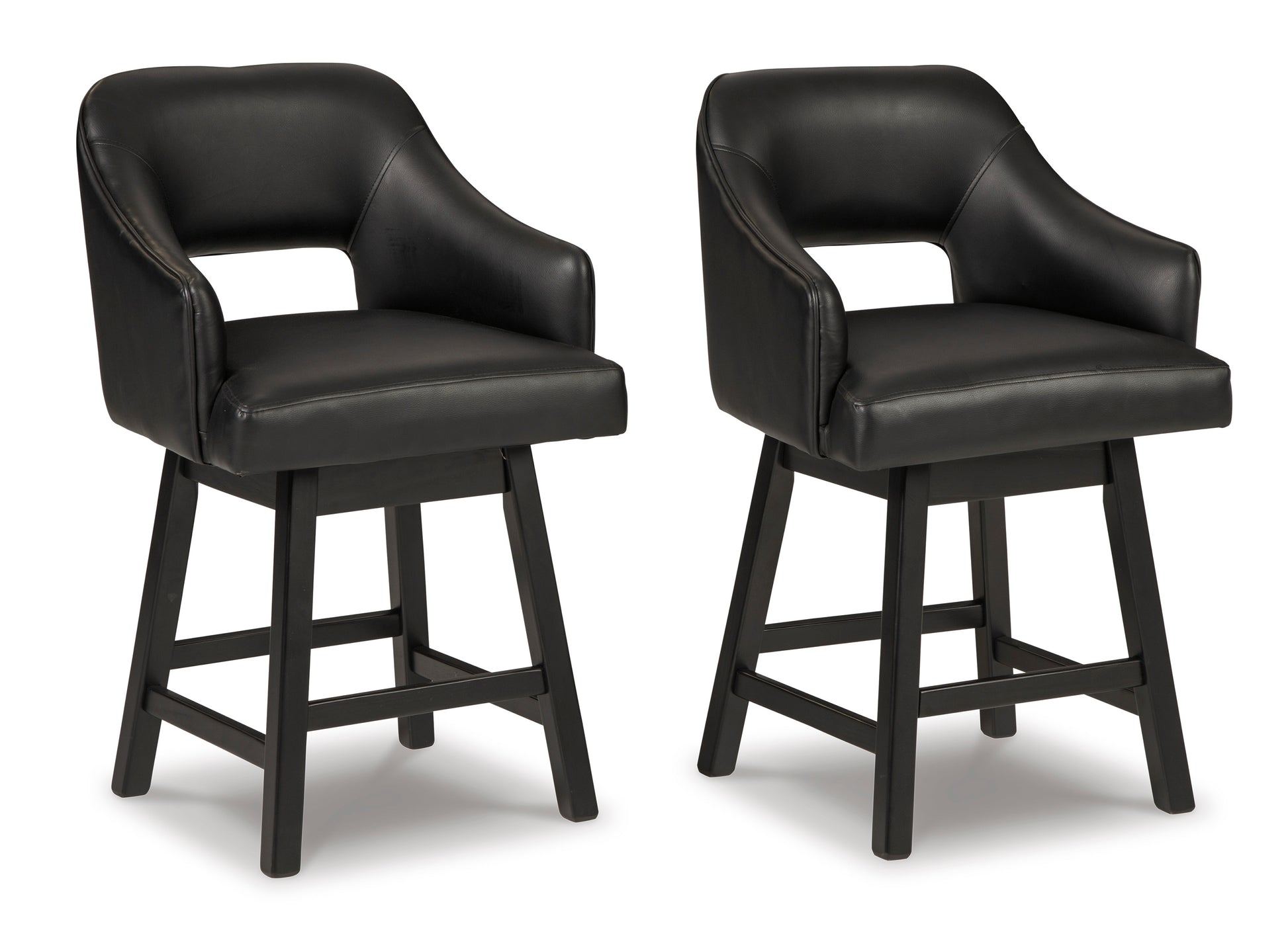 • This striking barstool invites you to take contemporary modern style for a spin. Comfortably cushioned seat, self-returning swivel and contoured back make it beautifully in tune with your needs. Luxurious faux leather upholstery is a sensational touch.