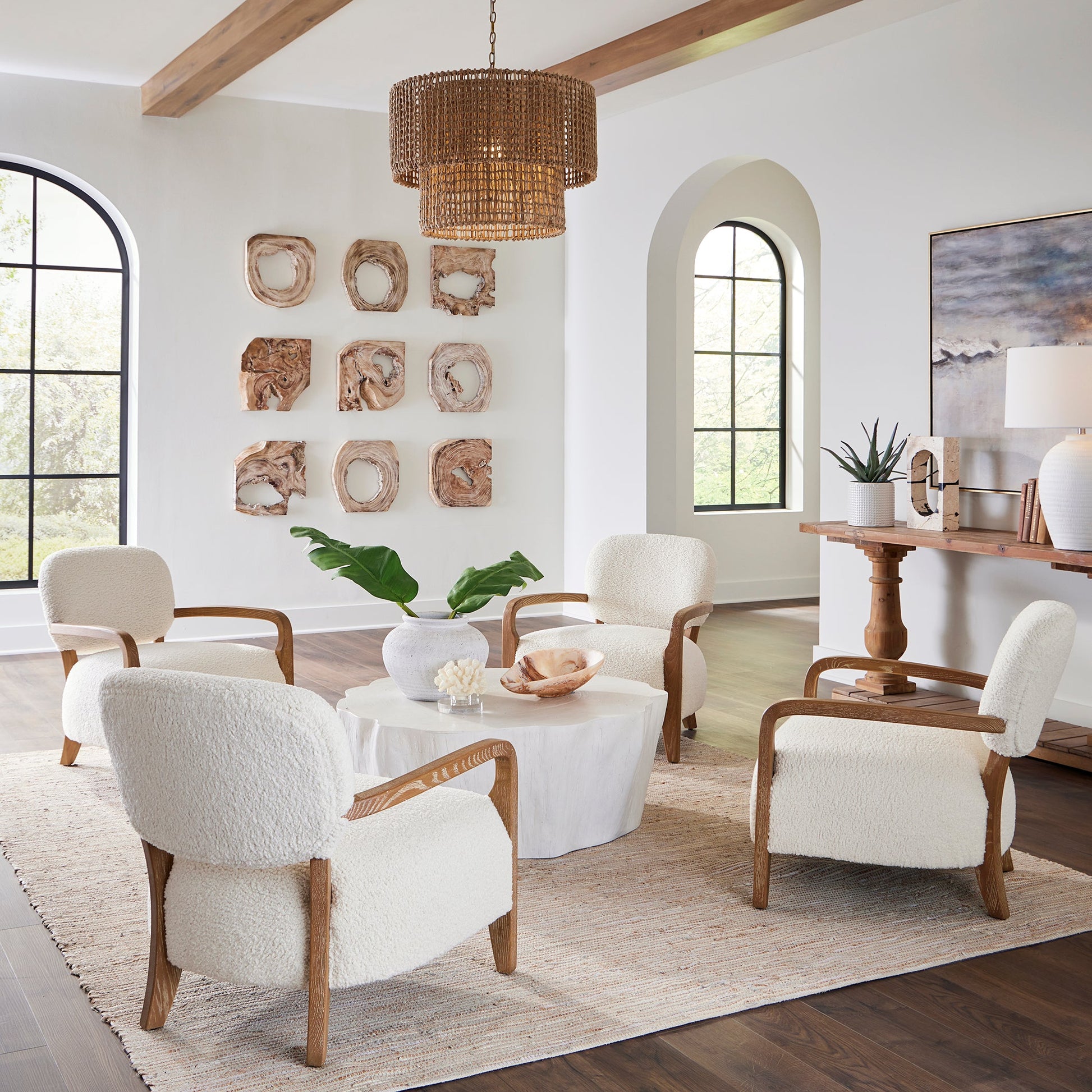 A statement making cluster of aloe potted in a dimpled ceramic container and glazed in ivory with beige undertones.