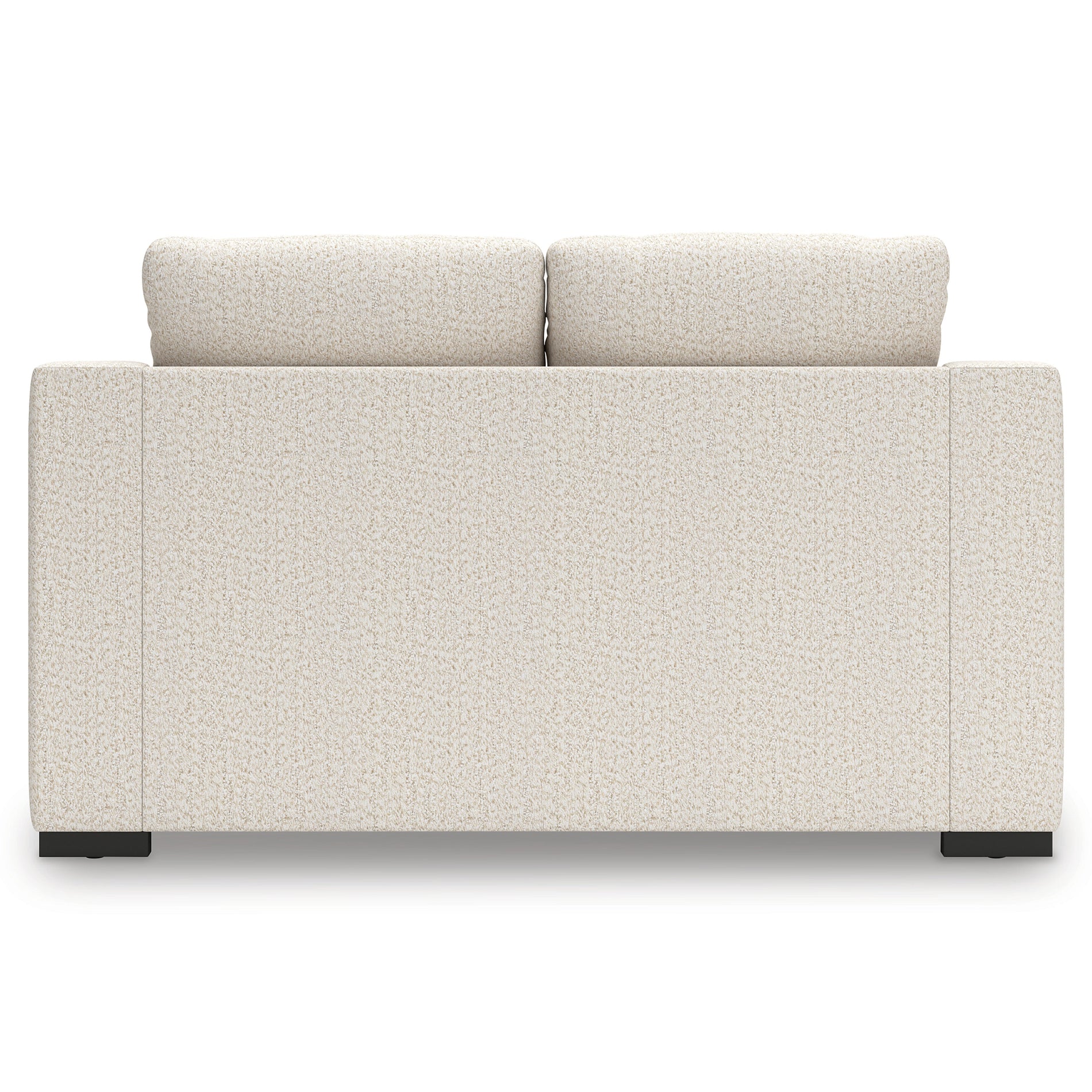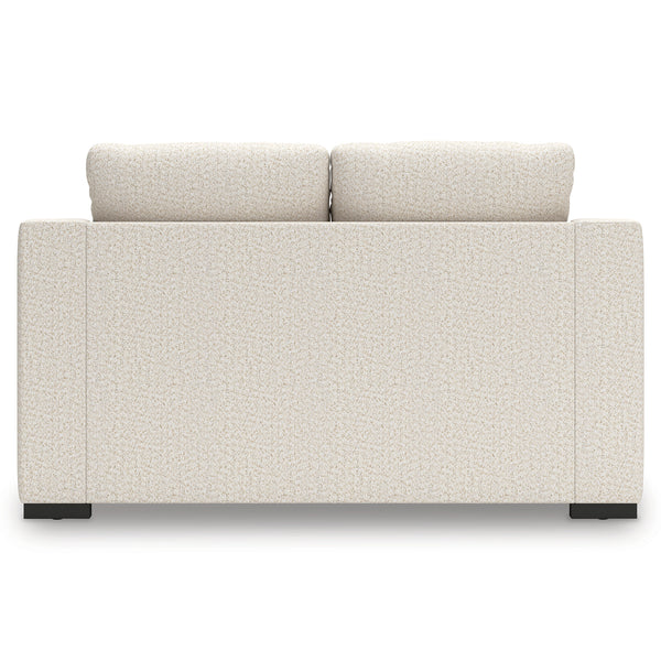 • Upgrade your living room with the Tildan loveseat. Its contemporary style, sleek slope arms, and soft neutral upholstery elevate your space. With ultra-plush feather blend cushions, you'll stay comfortable for hours while reading or binge-watching. Strike the perfect balance of comfort and style with this chic loveseat.