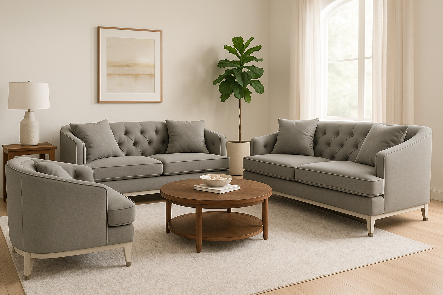 Introducing the Glowhaven CHAIR + LOVESEAT + SOFA set, a sophisticated ensemble of three couches and a chair. Crafted with utmost precision and attention to detail, this collection exudes elegance and comfort. Each piece is thoughtfully designed to seamlessly blend into any living space, offering a harmonious balance of style and functionality. Elevate your home decor with the timeless appeal of the Glowhaven CHAIR + LOVESEAT + SOFA set, where luxury meets versatility.