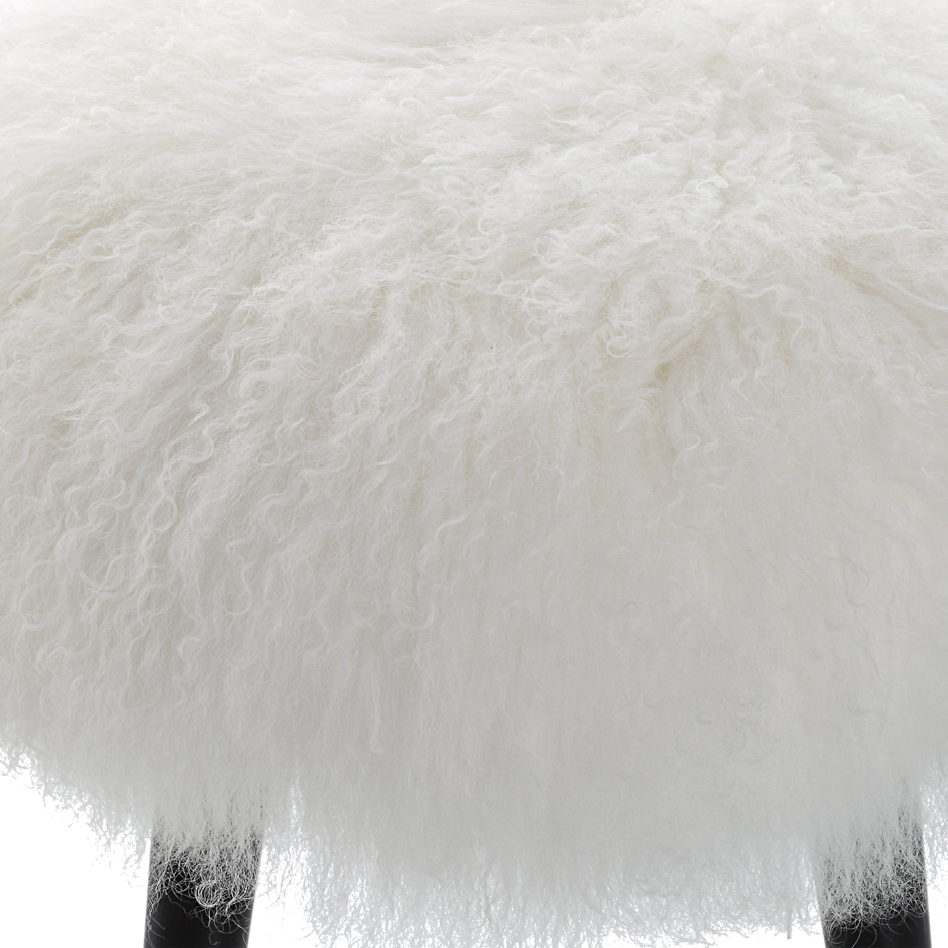 A True Conversation Piece, Upholstered In Unmatched Luxury Of Authentic White New Zealand Sheepskin On Solid Wood Tapered Legs In Matte Black.