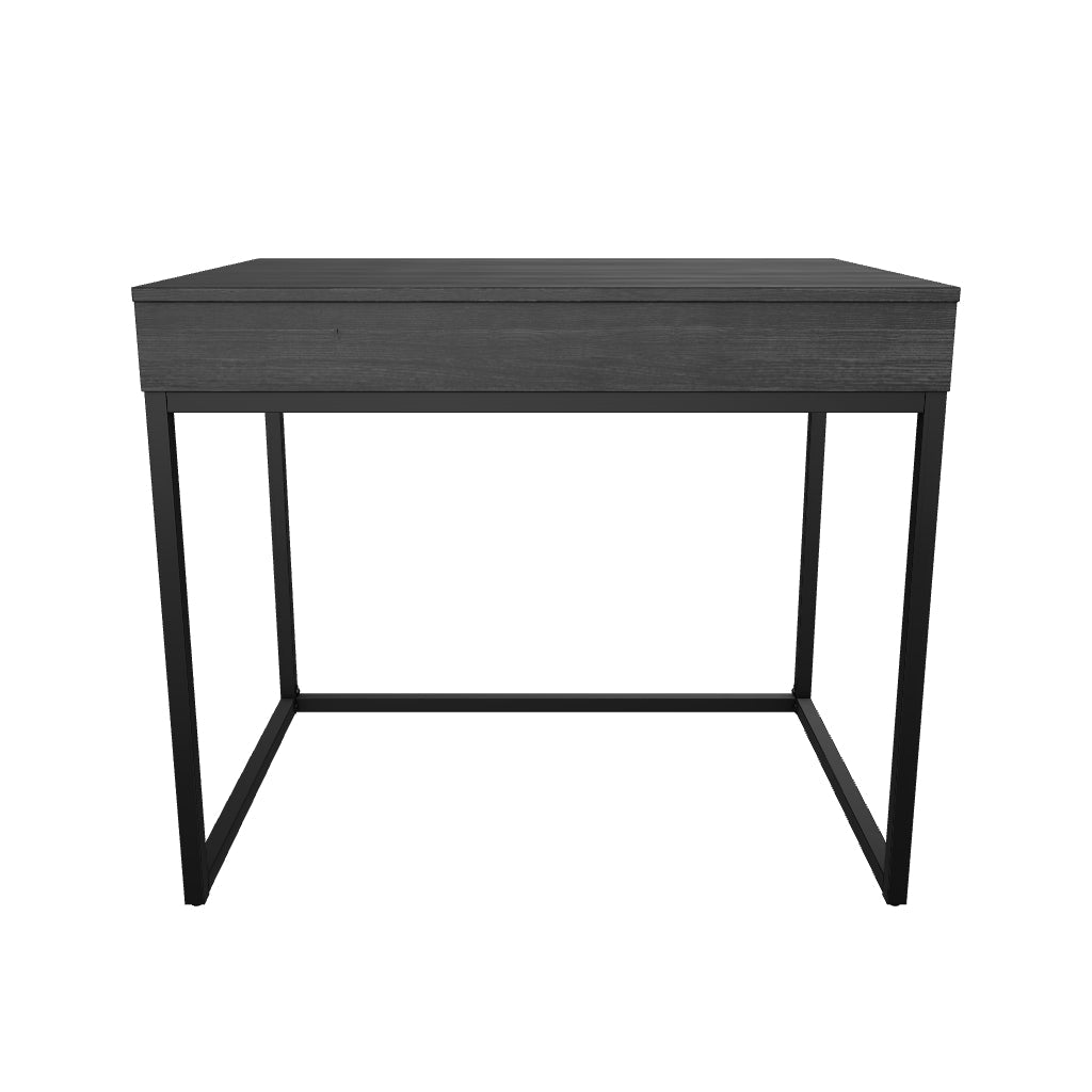 Elevate your home office with the simply sensational Yarlow lift-top desk. Pairing a dark wood grain look with a black metal base for modern appeal, this minimalistic desk is dressed to impress in a no-muss, no-fuss way. Small storage bins underneath the sleek lift top bring added function.